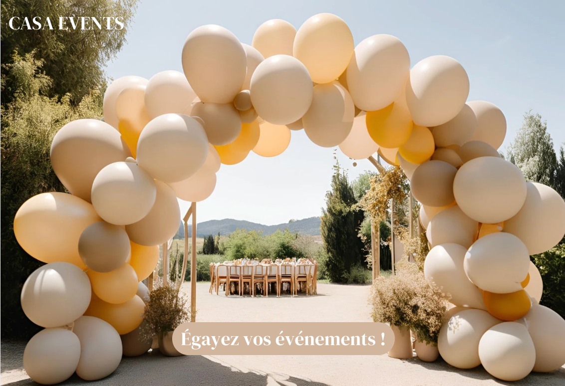 Chez Casa Events, nous allions créativité et qualité pour créer des événements mémorables. Chaque produit est conçu sur mesure pour répondre à vos besoins spécifiques, avec un service client réactif pour garantir une expérience sans faille. Votre satisfaction est notre priorité, et nous mettons tout en œuvre pour faire de votre événement un moment unique.